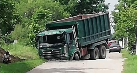 В селе Воздвиженка под Уссурийском водитель большегруза не справился с управлением и съехал в кювет, сообщают «Вести:Приморье».