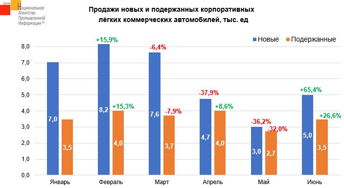 Согласно данным НАПИ (Национальное Агентство Промышленной Информации) спрос на новые LCV со стороны корпоративных клиентов опережает спрос на подержанную технику. Так в июне текущего года продажи новых легких коммерческих автомобилей выросли на 65,4%, продажи подержанной техники – на 26,6%.