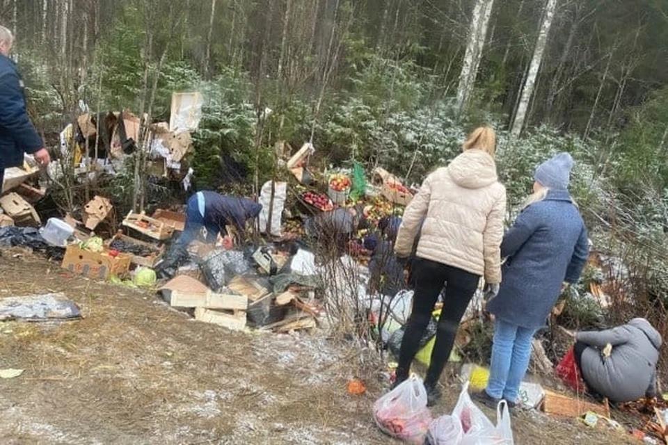 В Княжпоготском районе Коми опрокинулась фура с продуктами. Об этом сообщает БНК со ссылкой на местных жителей, которые поделились снимками того, как люди собирают «урожай» прямо с земли.