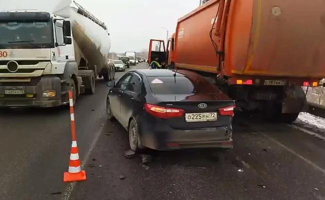 На 4-м километре автодороги Ялуторовск-Ярково произошло массовое ДТП. В нем приняли участие рейсовый автобус, мусоровоз и две легковушки.