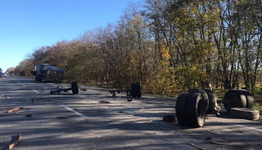 Авария случилась в 10-45 на 56 км + 300 м автодороги «Ростов-на-Дону – Таганрог». По предварительной информации, 46-летний водитель ехал на автомобиле «КамАЗ» с полуприцепом. В процессе дорожного движения произошел отрыв осей прицепа, из-за разрыва колеса. Один оторвавшийся фрагмент оси повредил автомобиль «Geely Emgrand», который двигался во встречном направлении.