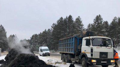 Странный поступок. На трассе под Ангарском водитель самосвала выбросил горящую стружку на обочину и скрылся. Произошёл инцидент накануне ночью.