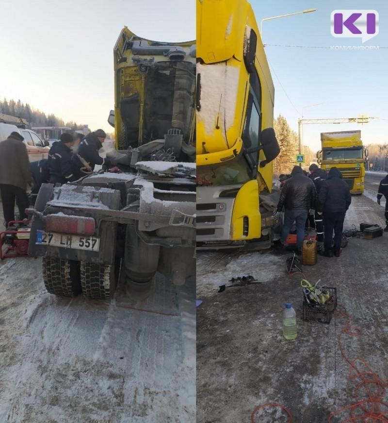 В 09:15 на федеральную трассу "Вятка" в Сыктывдинский район выехал Сыктывкарский спасотряд. Выяснилось, что дальнобойщики не говорят по-русски, общаться с ними пришлось через онлайн-переводчик. Сначала спасатели пытались завести машину с помощью тепловой пушки, потом заряжали аккумуляторы. Машина не завелась. Приняли решение поставить на автомобиль новые аккумуляторы "Спас-Коми", но и это не помогло.