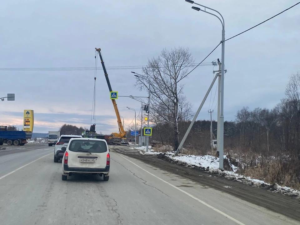 На объездной дороге в Южно-Сахалинске опрокинулся грузовик с шинами. Об этом сообщает телеграм-канал «Авточат».