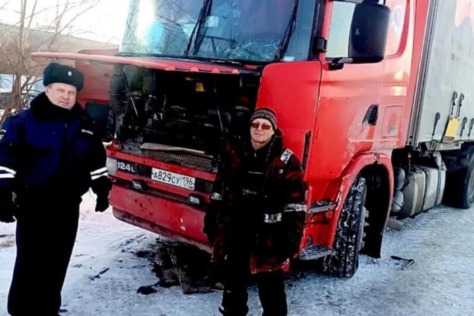 Полицейский из Пыть-Яха помог замерзающему дальнобойщику из Екатеринбурга. Полицейский заметил на обочине автомобиль «SCANIA» со свердловскими номерами и пришел на помощь водителю, который пытался отремонтировать неисправность двигателя, сломавшегося из-за низкой температуры.