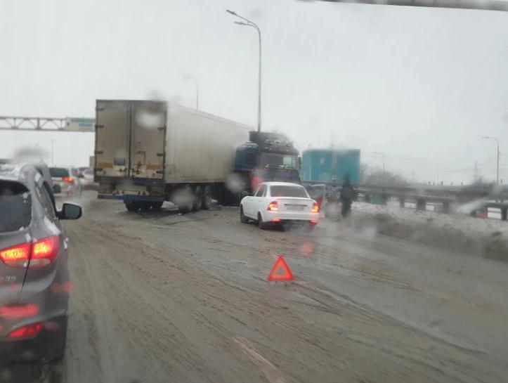 Авария с фурой собрала пробку длиной в несколько километров на одной из крупнейших улиц на юге Петербурга 21 декабря. Там же скопился приличный затор на КАД.