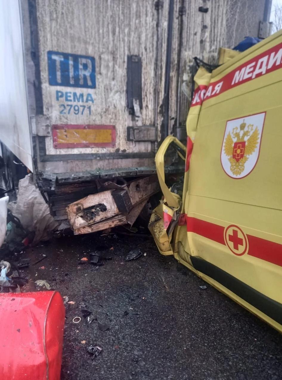 По данным прокуратуры Тверской области, в районе населенного пункта Никулино столкнулись два грузовых автомобиля, один легковой и карета скорой помощи. На кадрах в соцсетях ведомства видно, что скорая частично ушла под фуру. Прокуратура взяла расследование на контроль.