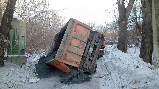 Оказалось, грузовой автомобиль с прицепом двигался на выезд из города и навигатор завел водителя на улицу Щорса. В какой-то момент машина на горке забуксовала и покатилась назад, а прицеп завернуло, в итоге он наехал на сугроб и опрокинулся на бок.