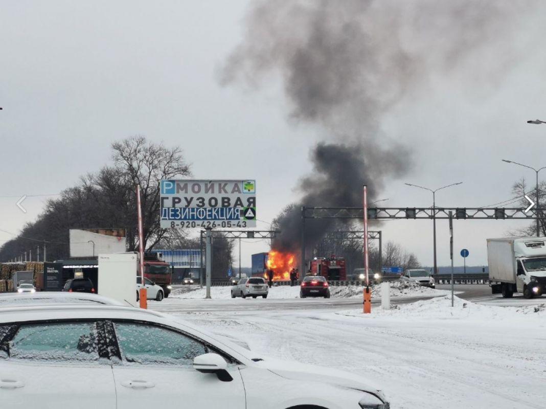Грузовик вспыхнул у поворота на аэропорт в Чертовицах сегодня утром, 15 февраля. Об этом сообщила пресс-служба регионального управления МЧС.