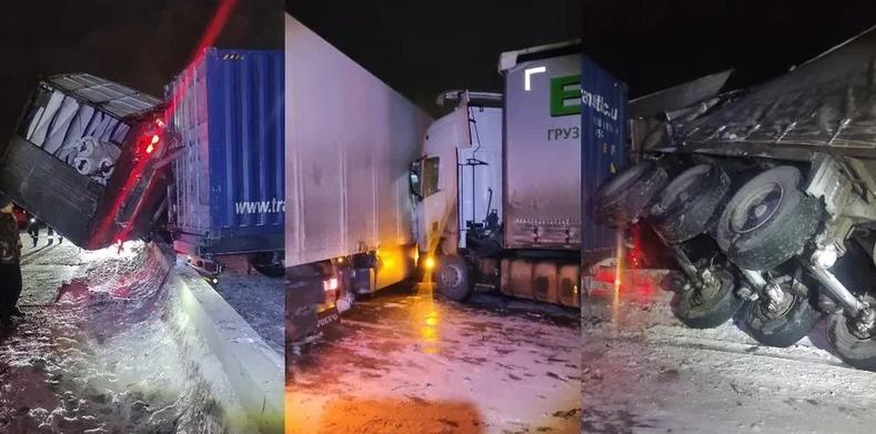 Вечером 8 марта грузовики врезались и перевернулись посередине проезжей части возле села Барлак. Собой они заблокировали проезд на Северном объезде.