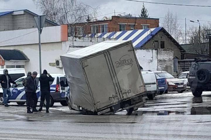 О происшествии с «Газелью» на одной из дорог в областном центре сообщили в телеграм-канале «такиживем». Судя по опубликованным фото, грузовик попал в яму левым задним колесом.