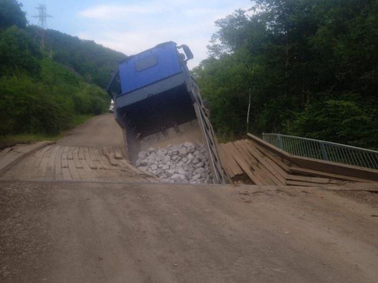 Как поделились в пресс-службе министерства, деревянный ветхий мост обрушился из-за большегруза. В день ЧП подрядчик приступил к работам по организации объезда.
