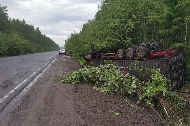 Большегруз Renault T двигался из Приморского края в направлении Комсомольска. По неустановленным пока причинам он не справился с управлением, выехал с дороги и перевернулся. Водитель, житель Надеждинского района Приморского края, погиб на месте до приезда скорой помощи. На месте работает следственно-оперативная группа, МЧС.