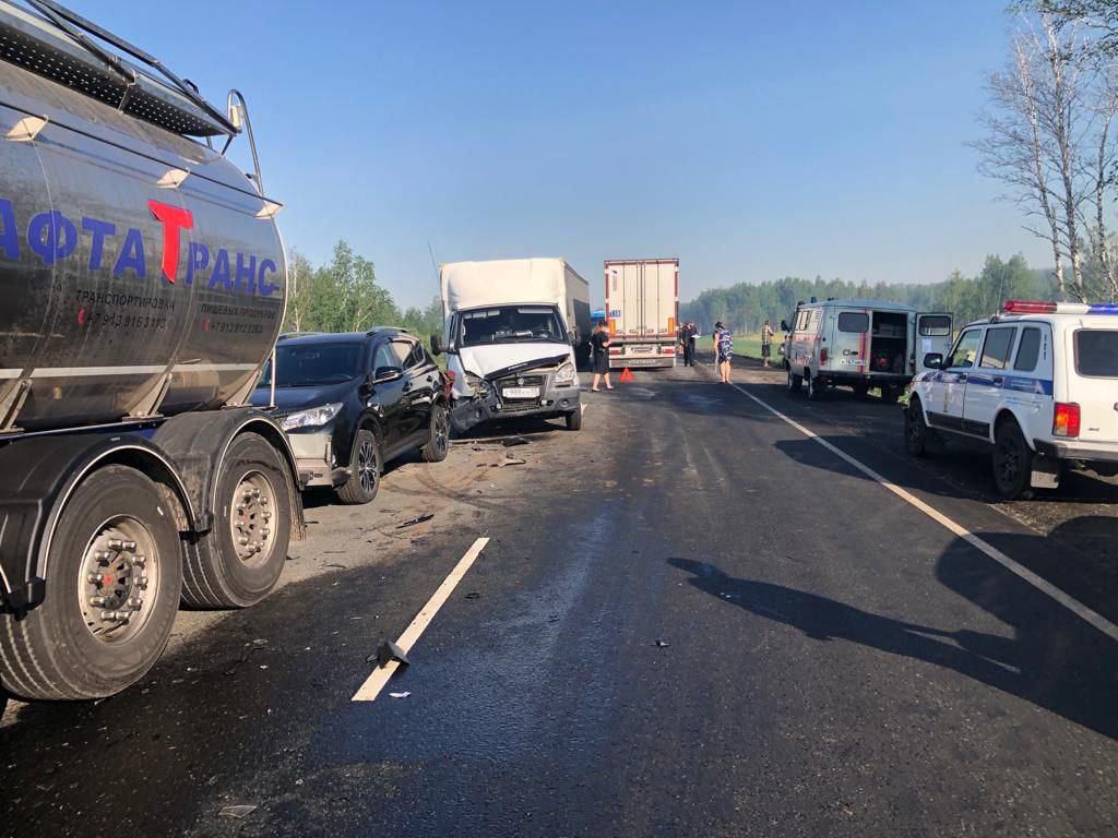 Сегодня, 9 июня, на 404 километре федеральной автодороги Тюмень-Омск столкнулись четыре автомобиля.