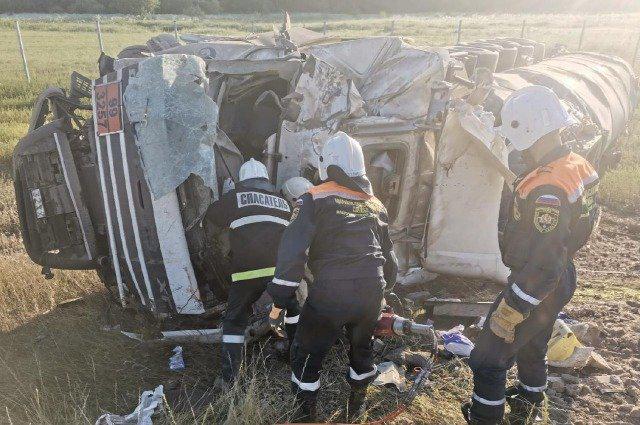 Известно, что тяжелогруз из Ленинградской области перевернулся на 169-ом километре трассы М-12. Его водитель погиб. Кроме этого, что из машины разлился битум. Специалисты МЧС предотвратили возгорание и на данный момент деблокируют погибшего мужчину из фуры.