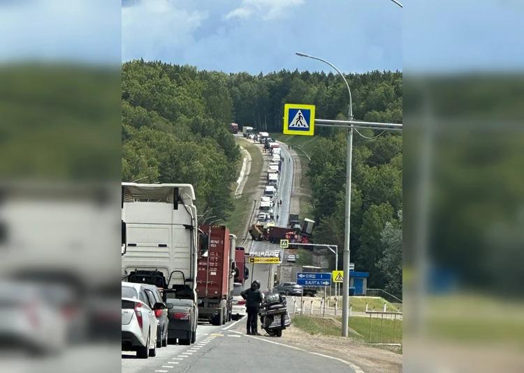 «Авария произошла в 16.50 22 июня. Машины ехали навстречу друг к другу, при этом лобового столкновения не было. Из-за аварии был незначительный затор в движении – технику нужно было убрать с дороги, потому что большегрузы были с прицепами, которые «сложились». Пробка была максимум 15 минут. В данный момент обстоятельства произошедшего устанавливаются».