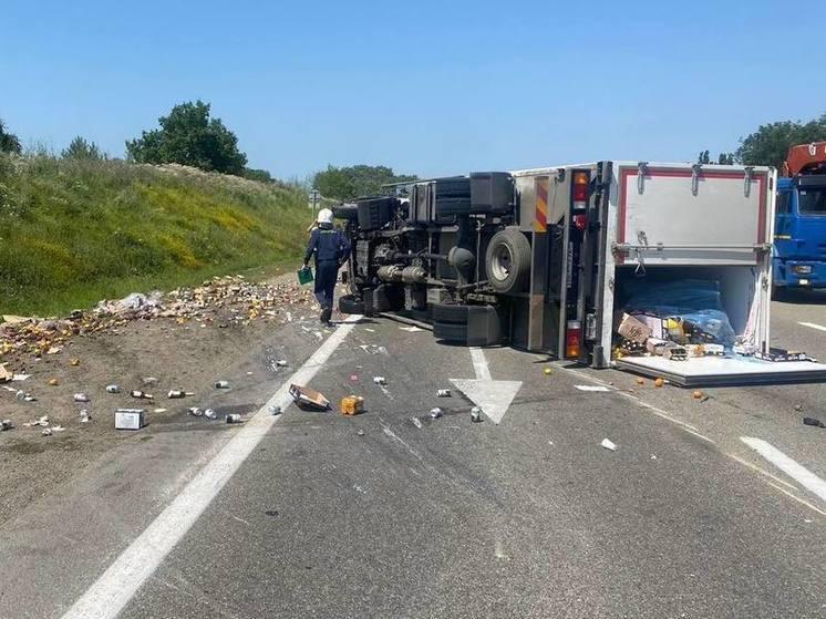 В пресс-службе кубанского ГУ МВД сообщили, что 60-летний мужчина за рулём Nissan нарушил правила пересечения нерегулируемого перекрёстка и «влетел» в большегруз Hyundai. В результате столкновения иномарку выбросило на встречку, где она врезалась в фургон. Оба большегруза перевернулись, на трассу рассыпались продукты.