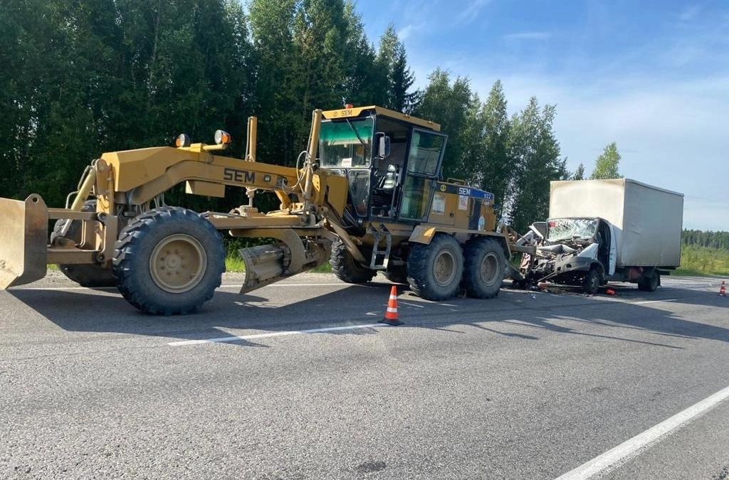 В Нефтеюганском районе на 551-м километре трассы Тюмень – Ханты-Мансийск произошла авария. Известно, что водитель грузовика «ГАЗ» не справился с управлением и въехал в грейдер. В результате столкновения произошло замятие кабины у грузовика.