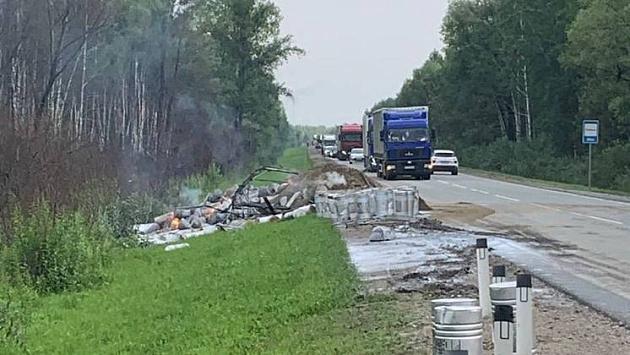 В Мошковском районе Новосибирской области груженая фура столкнулась с легковым автомобилем, что привело к возгоранию бочек с алюминиевой пудрой. Об этом сообщили в областной Госавтоинспекции.