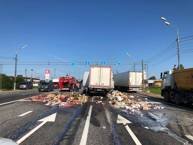 1 августа произошла авария на трассе М-10, около поворота на Редкино в Конаковском районе Тверской области. Как уточнили в ГИБДД, столкнулись две грузовые машины JAC и Volvo.