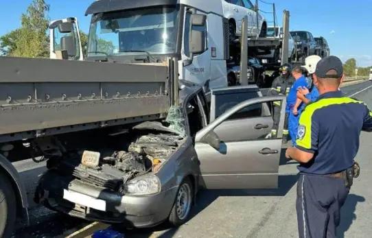 По предварительным данным, 52-летний водитель, управляя автомобилем «Рено» на 891 км трассы не выбрал безопасный скоростной режим, допустил наезд на стоящий автомобиль «Лада Калина», за рулем которого находился 67-летний водитель. От удара «Калина» совершила наезд на впереди стоящий в попутном направлении полуприцеп «Котель», в составе с тягачем «ДАФ».
