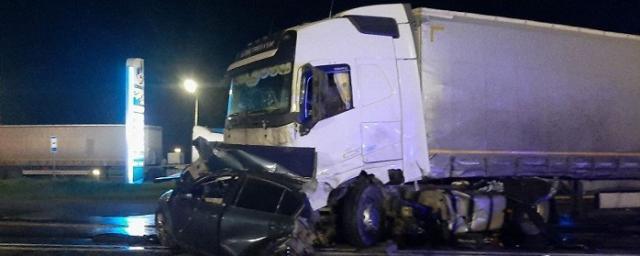 Авария с участием легкового и грузового автомобилей произошла в понедельник в девятом часу вечера на 241-м километре федеральной трассы Тюмень — Ханты-Мансийск.