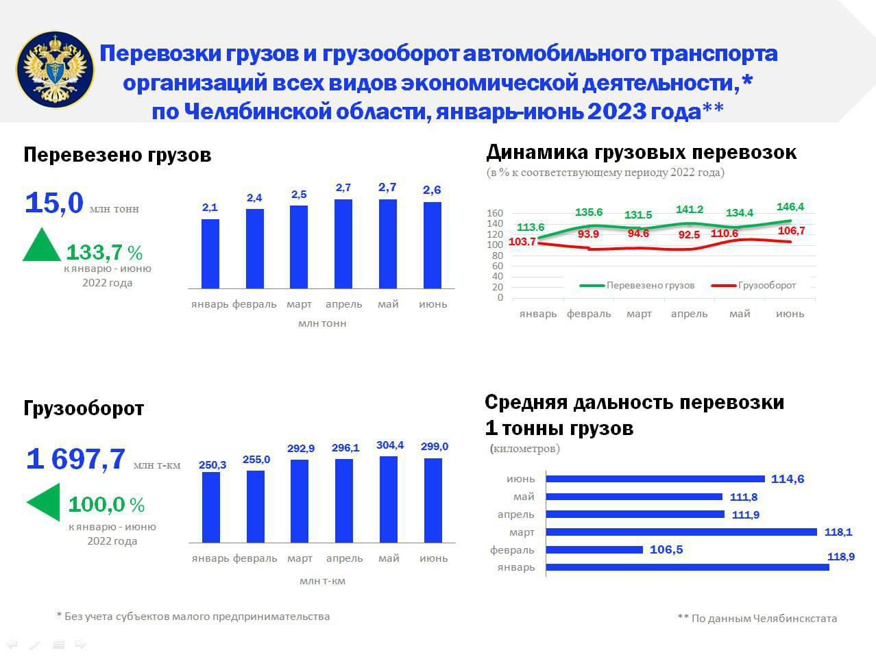 «Объем грузооборота составил 1697,7 млн тонно-километров. В абсолютных величинах прироста по данному показателю в 2023 году нет, но, учитывая, что сам объем грузов увеличился на 33,7%, это свидетельствует, что транспортные компании стали задействовать более короткие внутристрановые маршруты, увеличив сам объем перевозимого груза», — уточнили в КСП.