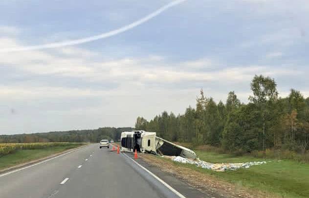 В социальных сетях появилась информация о том, что сегодня утром на Калужском шоссе возле Берников перевернулась фура.