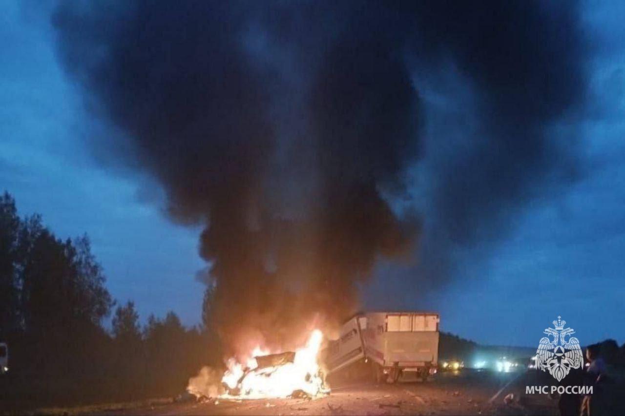 По данным ведомства, на трассе Уфа – Бирск – Янаул столкнулись два легковых автомобиля и фура. Одна из легковушек загорелась.