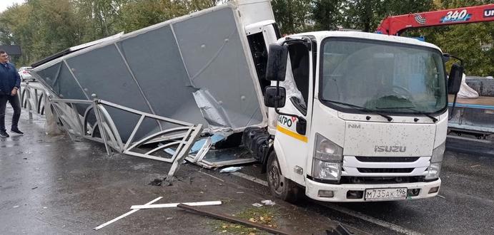 Авария с участием двух грузовиков произошла на дублере Сибирского тракта в Екатеринбурге. Две фуры столкнулись на светофоре.