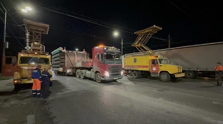 Огромную негабаритную конструкцию для Астраханского газоперерабатывающего завода провезли по Волгограду. Чтобы все это без проблем прошло по городу, пришлось даже на время отцеплять трамвайные провода. Именно из-за негабаритности груза и множества тонкостей перевозку осуществляли в ночное время.