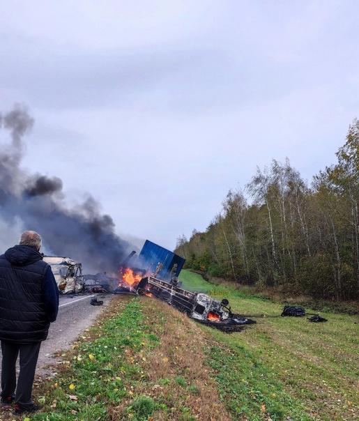 Авария произошла 12 октября на елецкой трассе у поворота к селу Бруслановка. Столкнулись грузовики Scania и Mercedes, после чего первое транспортное средство ударило «Газель». Все машины загорелись, пишет GOROD48.