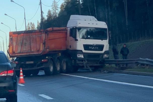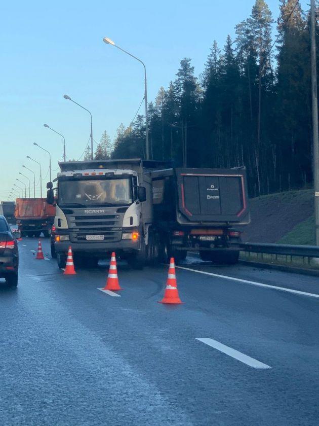 ДТП с участием большегрузов и иномарок произошло в понедельник утром на федеральной трассе в Выборгском районе Ленинградской области.