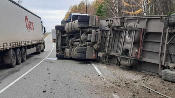 Утром 16 октября на 283-м км федеральной трассы Р-258 «Байкал» в Кабанском районе Бурятии произошло ДТП. В 5 км от города Бабушкин опрокинулся большегруз.