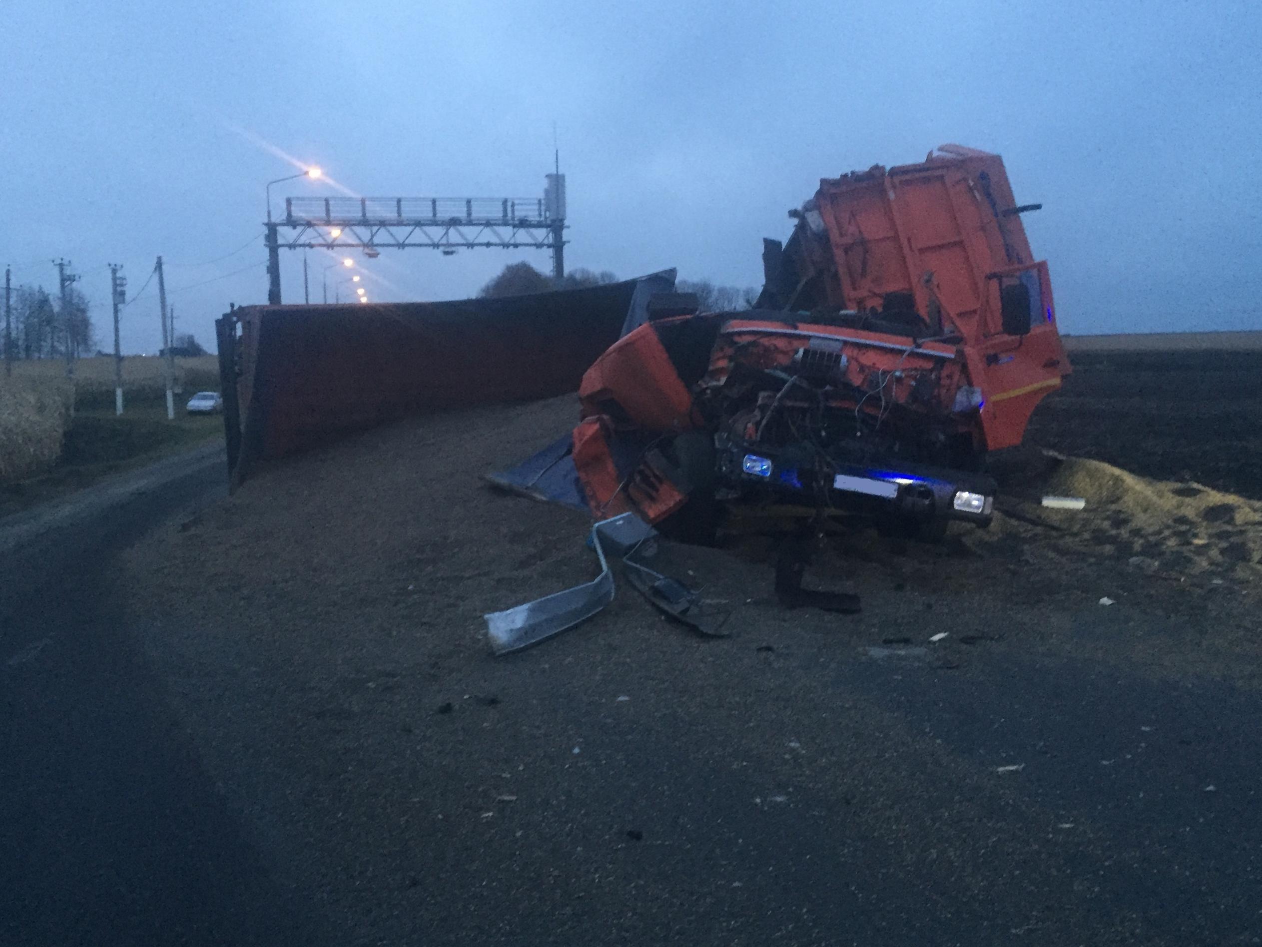 В результате КАМАЗ опрокинулся, его водитель получил травмы, но госпитализация не потребовалась.