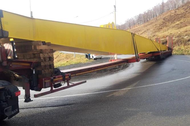 Известно, что водитель тягача перевозил крупногабаритный груз и заблокировал движение автомобилей на тракте. Сейчас транспортное средство эвакуируют. На месте работают дорожники и инспекторы ГИБДД.