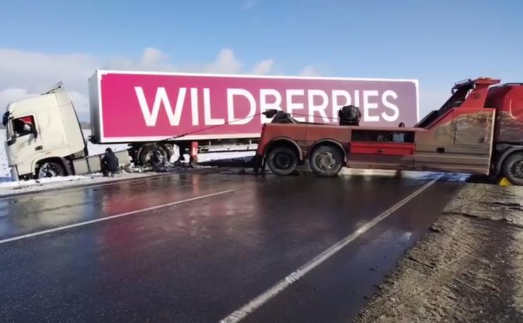 Большегруз Wildberries пытаются вытащить из кювета на 169-м км трассы Тюмень - Омск, в Омутинском районе Тюменской области. Движение транспорта ограничено, сообщает региональная Госавтоинспекция.