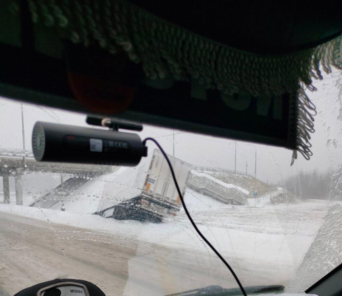 Утром 30 октября в Калининском округе Тверской области фура съехала в кювет. Фото прислали в группу News 69.