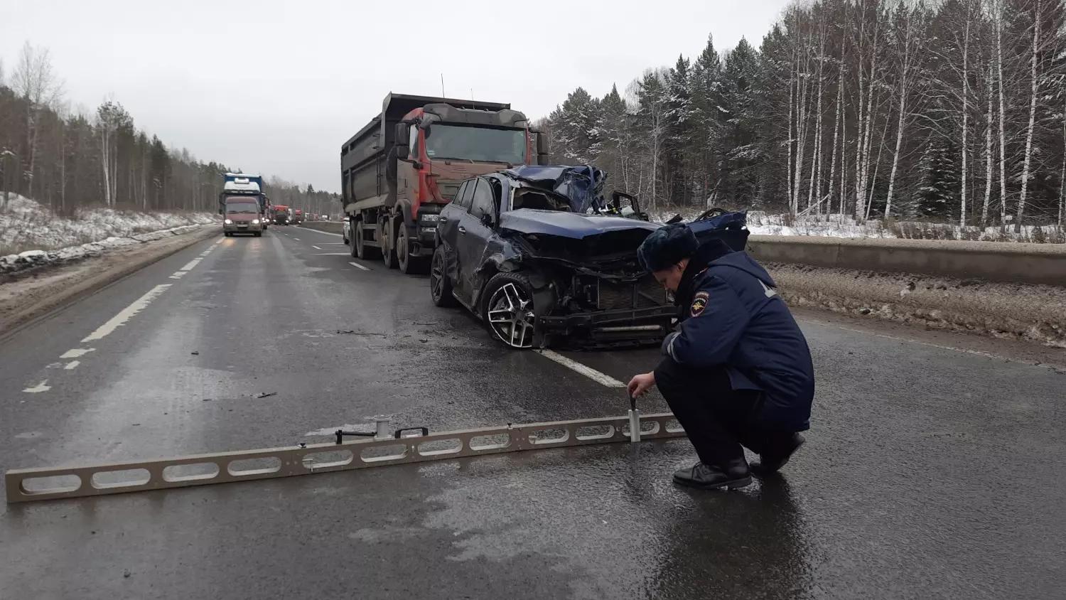 На трассе «Пермь-Екатеринбург» произошло ДТП с двумя грузовиками, которые буквально смяли автомобиль Mercedes Benz. Пострадали беременная пассажирка легковушки и находившийся за рулём её муж. Семилетний сын супружеской пары не пострадал.
