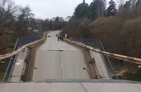 В деревне Кутино Подольского района произошло чрезвычайное происшествие. Автомобиль марки «Рено» ехал по мосту, когда внезапно мост обвалился, пишет Baza.