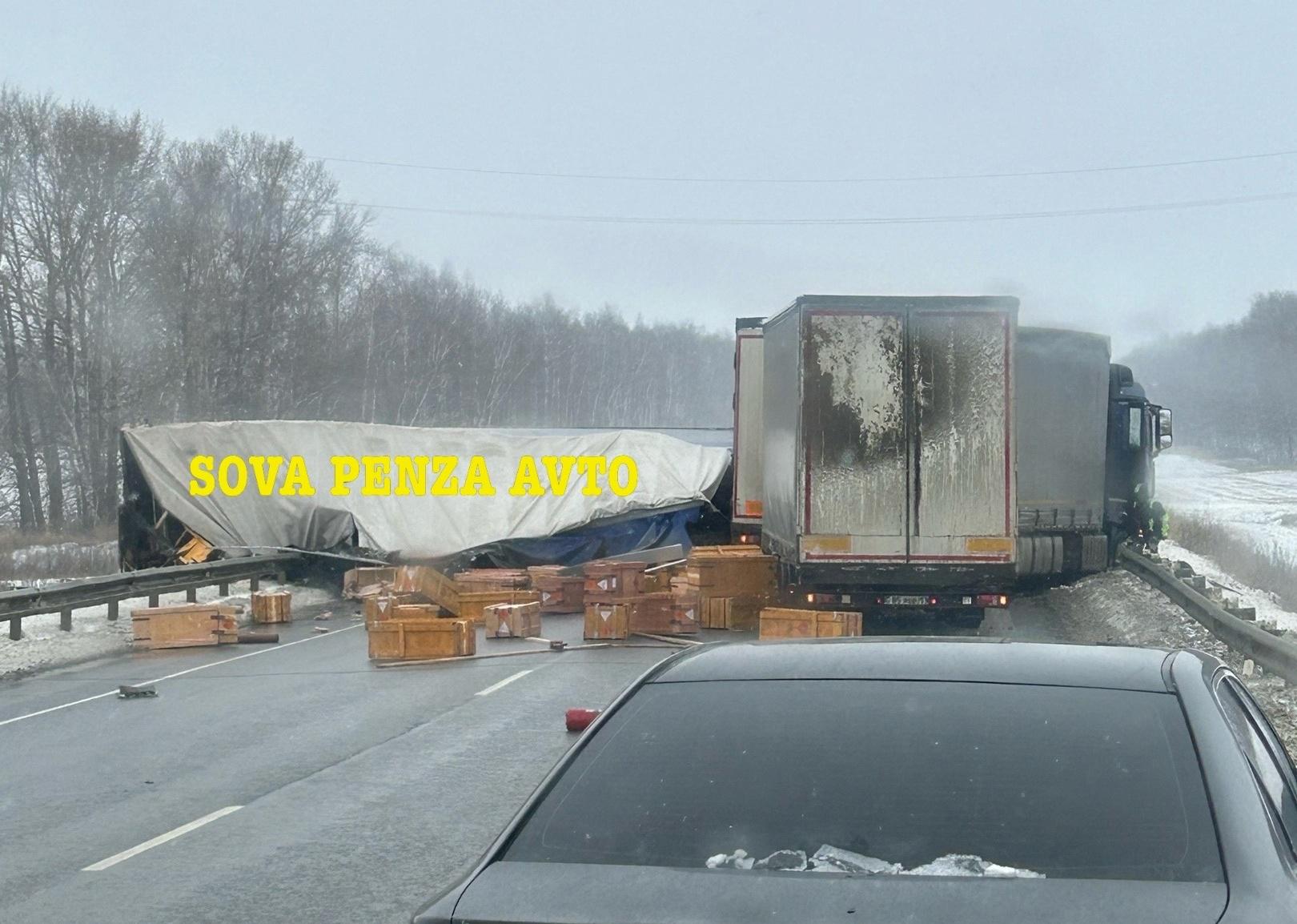 В социальной сети «ВКонтакте» появились фото и видео с места дорожно-транспортного происшествия, случившегося сегодня на трассе М-5 в районе села Подгорное Башмаковского района Пензенской области.
