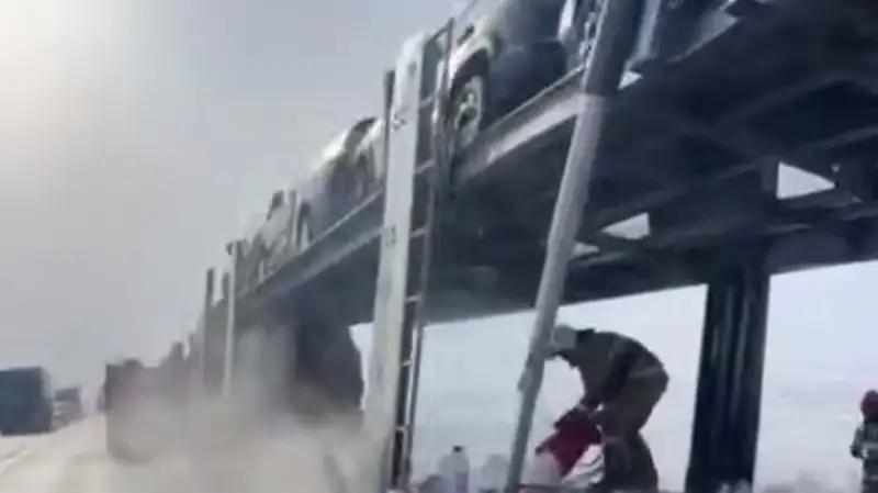 "Произошло возгорание задних колес автовоза, который перевозил восемь легковых автомобилей. Пожар оперативно ликвидирован. Пострадавших нет", – рассказали в пресс-службе МЧС РК.