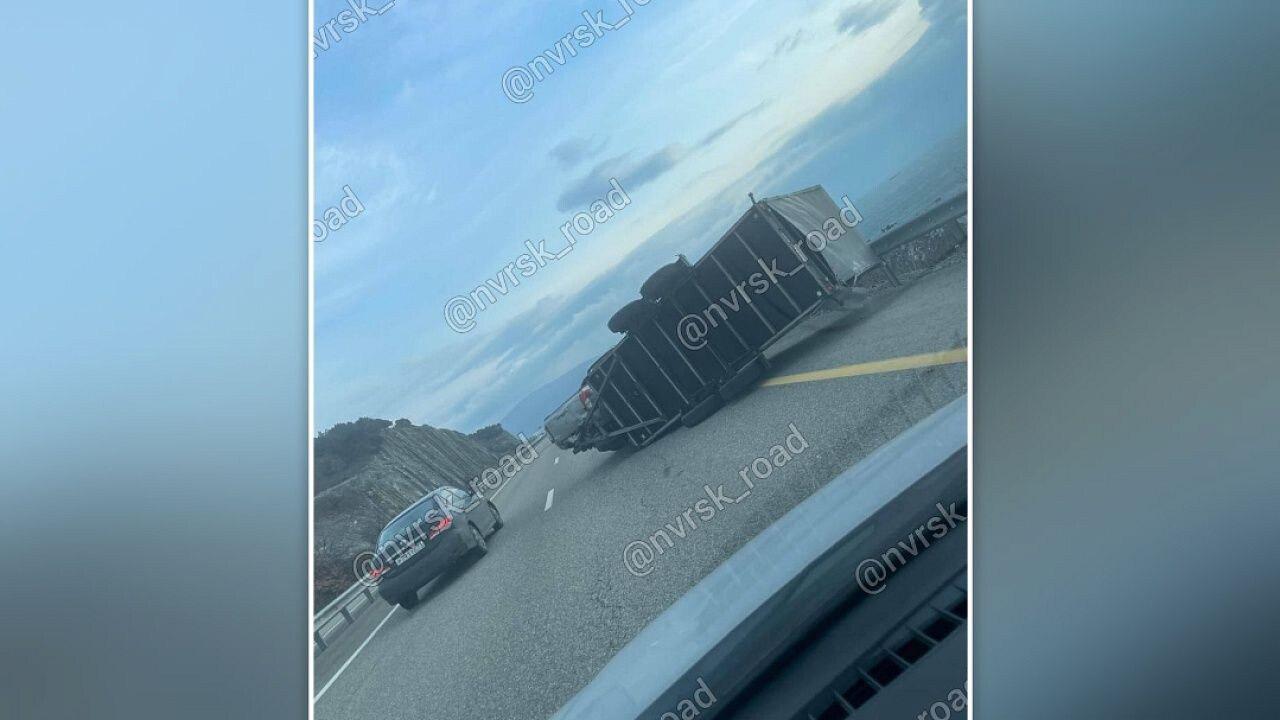 Грузовик перегородил полосу движения на трассе к селу Кабардинка. Об этом сообщает Телеграм-канал «Новороссийск ДТП».