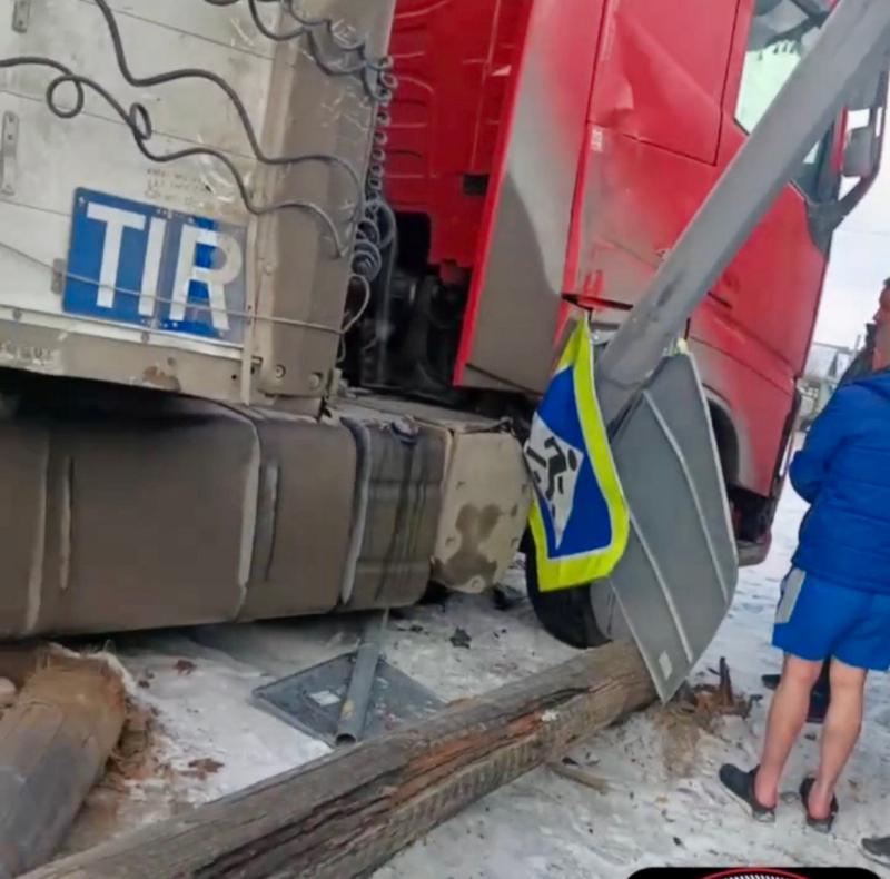 Судя по видео большегруз снес не только знак пешеходного перехода, но и ЛЭП.