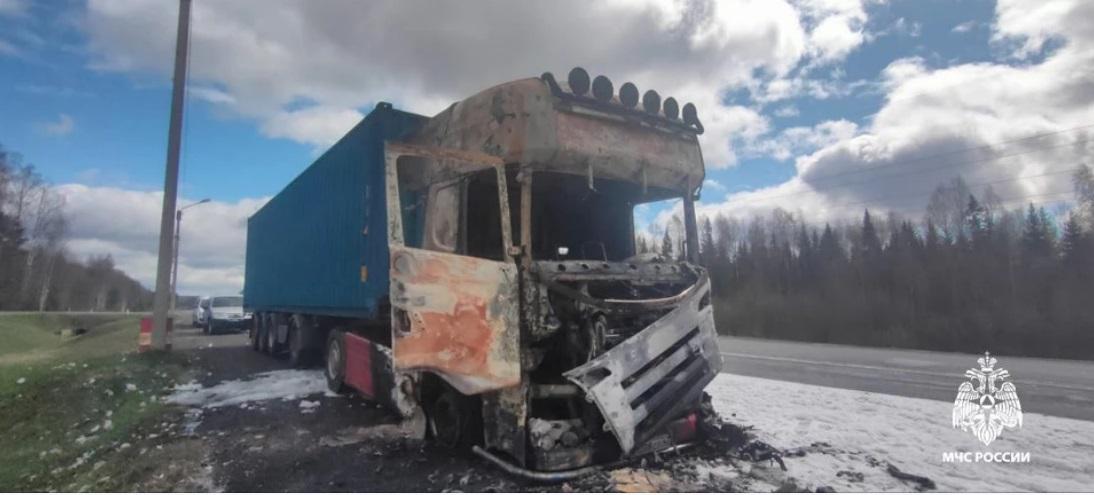 На костромской трассе из-за короткого замыкания загорелся большегруз, сообщает пресс-служба ГУ МЧС России по региону. Водитель фуры не пострадал.