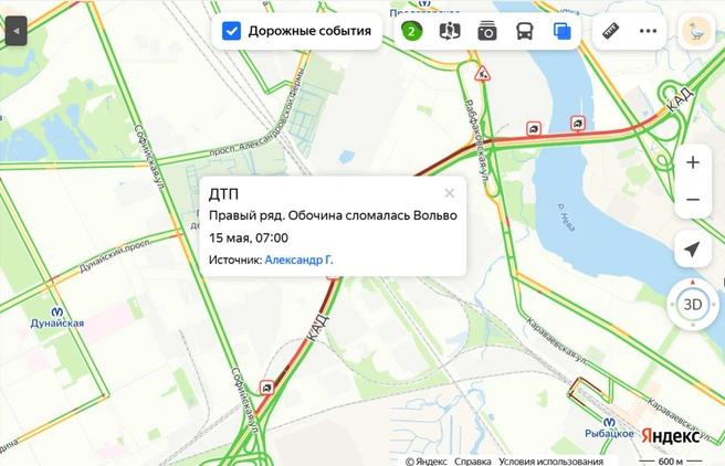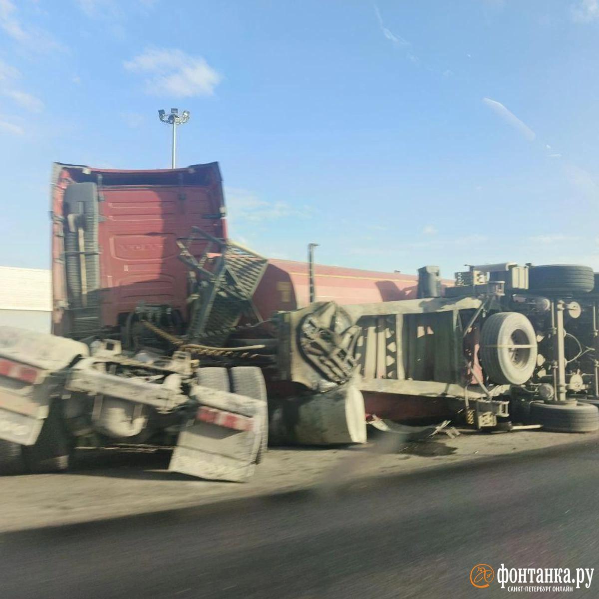 На внутренней стороне КАД у развязки с Софийской улицей опрокинулся прицеп самосвала, груз высыпался на дорогу, сообщают очевидцы в редакцию «Фонтанки» и в телеграм-канале «Мегаполис». По данным «Яндекс.Карт», пробка выросла до 3 км, ее хвост — в районе вантового моста.