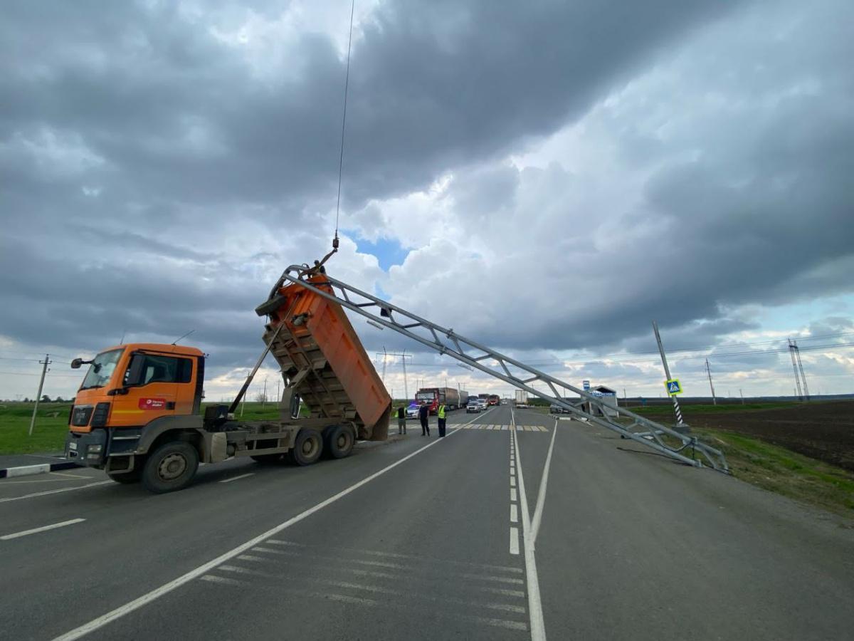Как сообщили в пресс-службе ГАИ по Челябинской области, по предварительной информации, водитель грузовика проезжал по участку дороги с поднятым кузовом, поэтому и зацепил при движении верхнюю опору, обрушив ее на проезжую часть. Все обстоятельства инцидента устанавливаются.