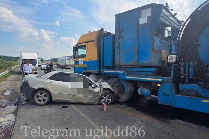 Авария произошла утром в четверг, 3 июля, в Нефтеюганском районе Ханты-Мансийского автономного округа – Югры на 695-м км федеральной трассы Р-404 «Тюмень – Ханты-Мансийск». В ДТП попали легковой автомобиль Mazda и грузовик Mercedes.