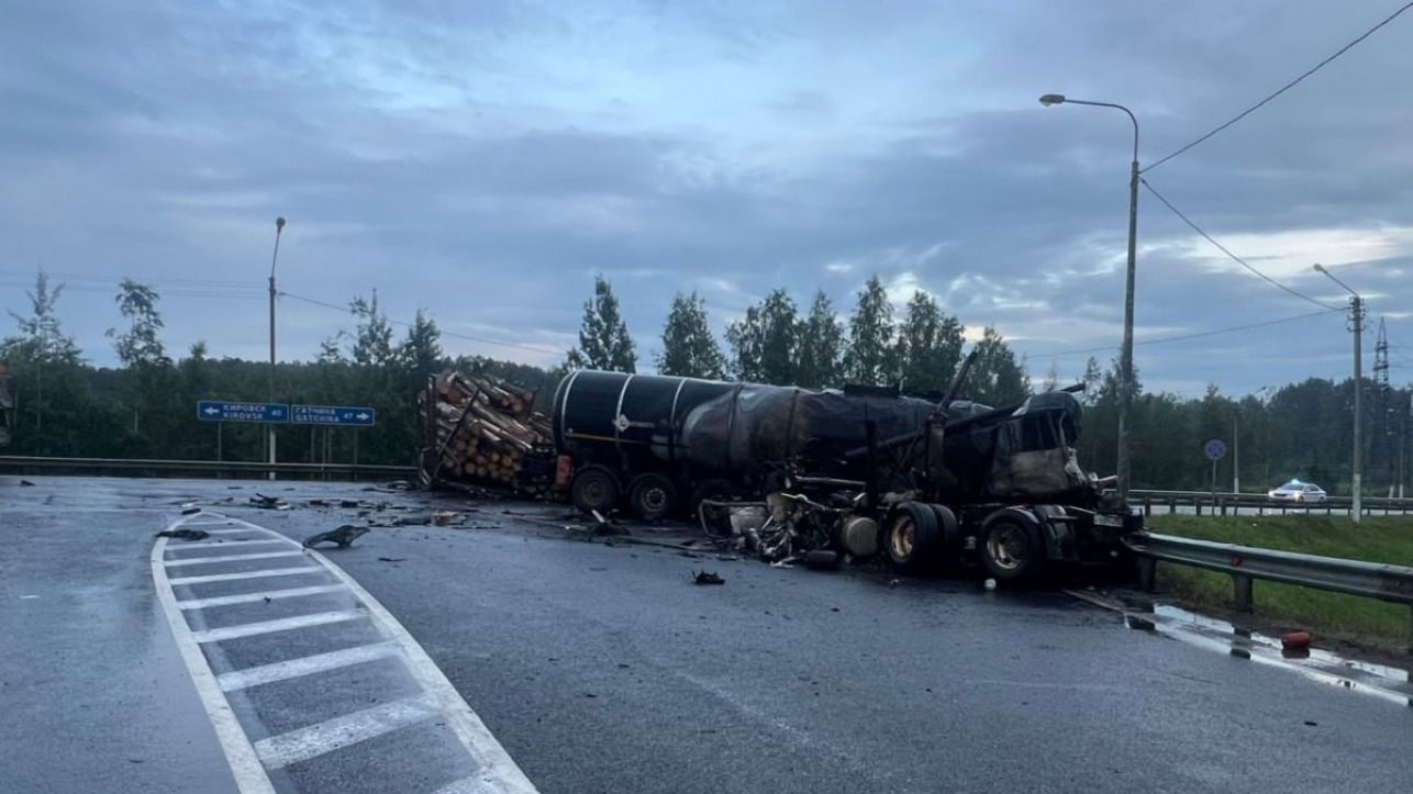 Массовое ДТП с участием сразу двух грузовиков произошло в Тосненском районе Ленинградской области. Погиб один человек.