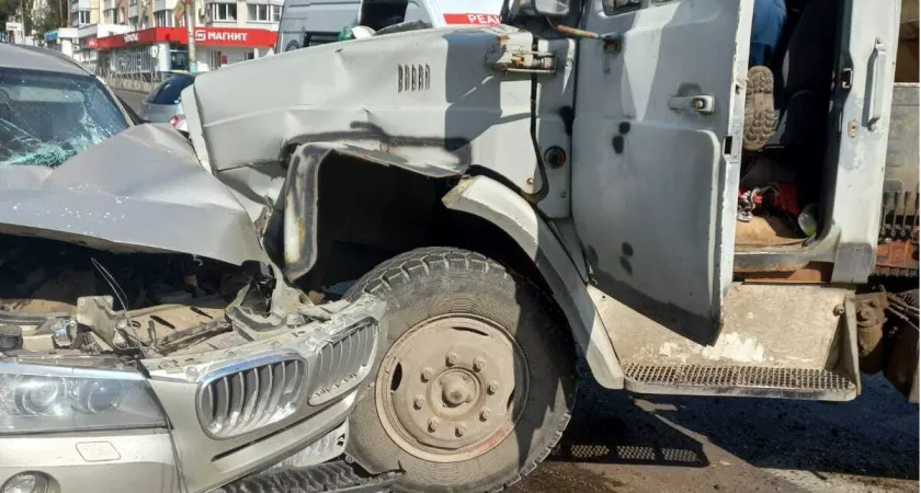 В Пензе на пересечении улиц Гоголя и Свердлова столкнулись легковушка и грузовик.